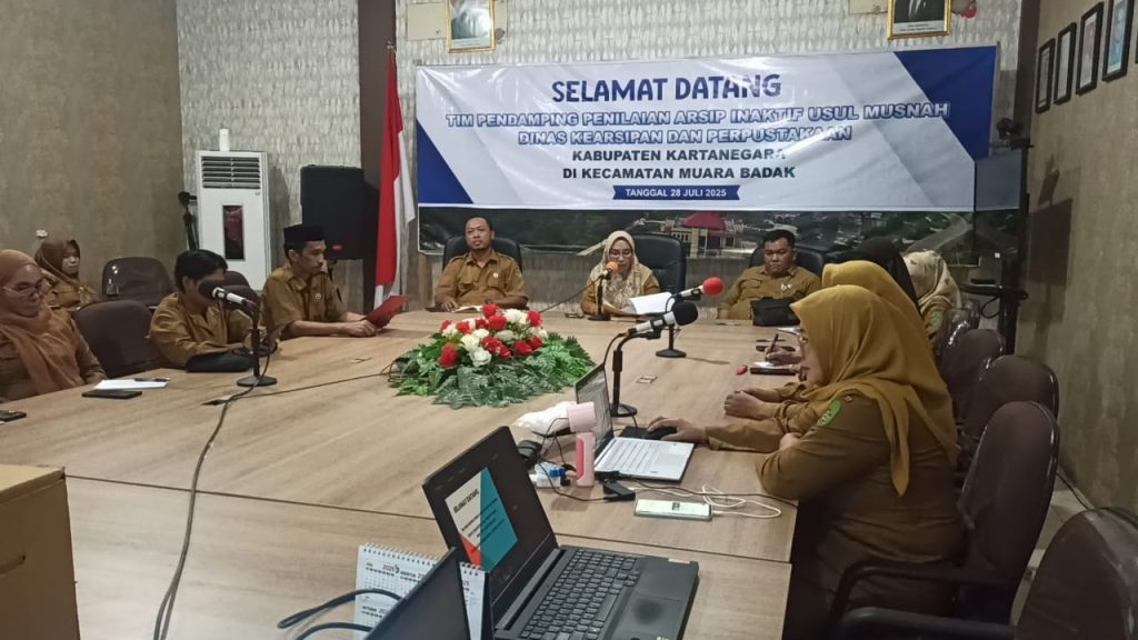 Kutai Kartanegara, 28 Juli 2025 — Tim Pemusnahan Arsip Dinas Kearsipan dan Perpustakaan Kabupaten Kutai Kartanegara melalui Bidang Perlindungan dan Penyelamatan Arsip (P2A) melaksanakan tahapan penilaian arsip usul musnah sebagai bagian dari upaya penyusutan arsip melalui pemusnahan arsip pada Kantor Kecamatan Muara Badak. Kegiatan ini berlangsung di Ruang Rapat Lantai 2, Jalan Gas Alam, Desa Batu-batu RT 02, Kecamatan Muara Badak.