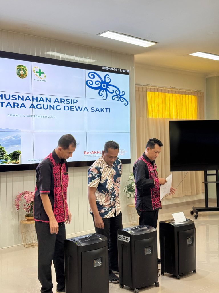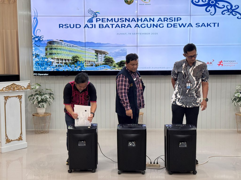 Tenggarong, 22 September 2025 — Diarpus Kukar melalui Bidang Perlindungan dan Penyelamatan Arsip (P2A) menghadiri kegiatan Pemusnahan Arsip yang dilaksanakan oleh RSUD Aji Batara Agung Dewa Sakti (Abadi) Samboja. Kegiatan Pemusnahan Arsip dilaksanakan pada Jumat (19/09) bertempat di Ruang Gardenia Lantai 2 RSUD Abadi Samboja. Kegiatan dihadiri oleh pihak Inspektorat Daerah dan Bagian Hukum Setdakab Kukar.