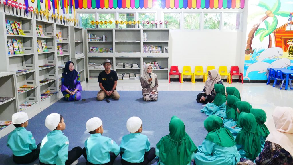 Dalam kunjungan ini, anak-anak mengikuti berbagai kegiatan seru, mulai dari pengenalan ruang dan layanan perpustakaan, edukasi tentang fungsi perpustakaan, hingga mendengarkan dongeng penuh imajinasi dari Kak Heri. Mereka juga diajak berkeliling melihat koleksi serta fasilitas perpustakaan, dan berinteraksi melalui tanya jawab sederhana.