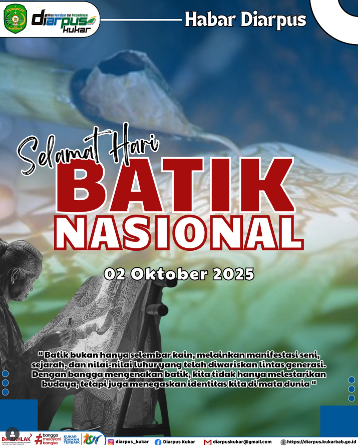 Tenggarong, 02 Oktober 2025 — Dinas Kearsipan dan Perpustakaan Kabupaten Kutai Kartanegara mengucapkan Selamat Hari Batik Nasional yang diperingati setiap tanggal 2 Oktober.