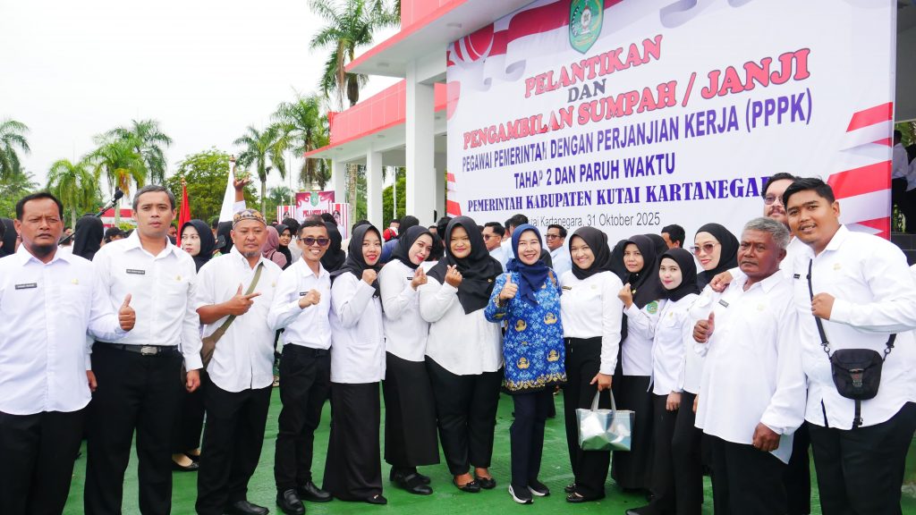 Tenggarong, 31 Oktober 2025 – Sebanyak 1.882 Pegawai Pemerintah dengan Perjanjian Kerja (PPPK) yang terdiri dari Tenaga Teknis, Guru, dan Kesehatan resmi dilantik oleh Pemerintah Kabupaten Kutai Kartanegara pada Jumat (31/10) di Halaman Kantor Bupati Kutai Kartanegara. Pelantikan dipimpin langsung oleh Bupati dr. Aulia Rahman Basri didampingi Wakil Bupati H. Rendi Solihin dan Forkopimda Kukar.