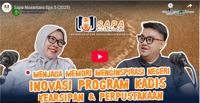 Tenggarong, 03 November 2025 — Dinas Kearsipan dan Perpustakaan Kabupaten Kutai Kartanegara resmi merilis episode perdana Podcast Sapa Nusantara. Pada episode pertama ini, hadir Plt. Dinas Kearsipan dan Perpustakaan, Rinda Desianti, S.Sos., M.Si., sosok yang berperan penting dalam menjaga memori daerah sekaligus mendorong inovasi di bidang kearsipan.