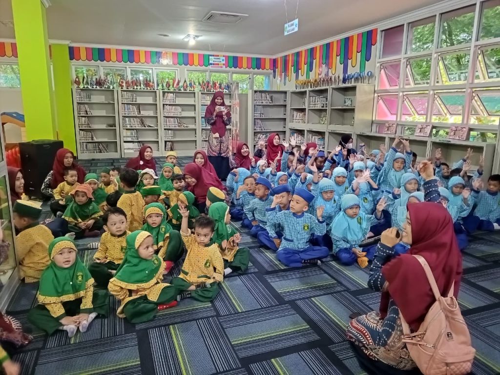 Kegiatan ini merupakan bagian dari program pembelajaran Peningkatan Literasi dan Numerasi Anak Usia Dini, yang bertujuan menanamkan minat baca dan rasa ingin tahu sejak dini melalui pengalaman belajar langsung di lingkungan perpustakaan.