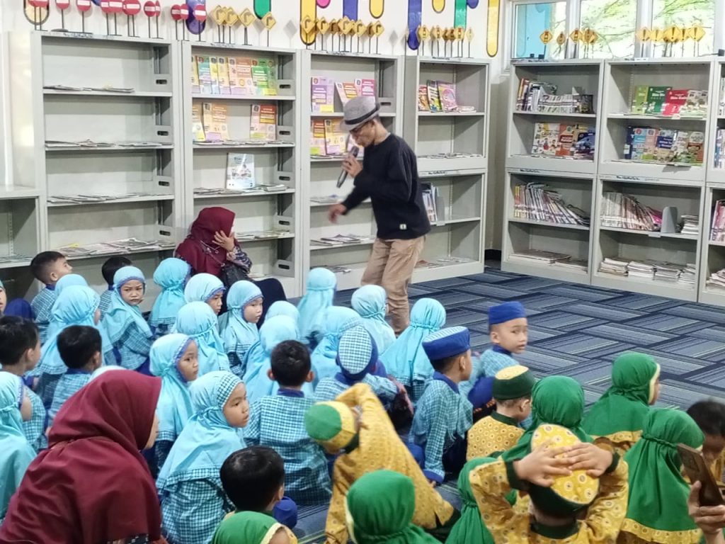 Selama kegiatan berlangsung, para peserta didik diajak berkeliling ruang layanan perpustakaan untuk mengenal berbagai koleksi bacaan anak, serta berinteraksi langsung dengan pustakawan. Suasana belajar yang menyenangkan membuat anak-anak tampak antusias dan aktif berpartisipasi dalam setiap sesi kegiatan.