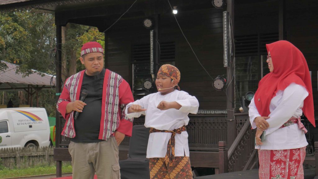 Setelah itu, kegiatan dilanjutkan dengan sesi Story Telling yang menghadirkan suasana edukatif dan hangat. Pada kesempatan ini, Unind dan Abisyaka membawakan kisah rakyat Kutai Kartanegara mengenai asal-usul Lembuswana, ikon legendaris dalam budaya lokal. Cerita tersebut tidak hanya menghibur, tetapi juga menjadi sarana pelestarian nilai sejarah dan kearifan lokal bagi peserta yang hadir.