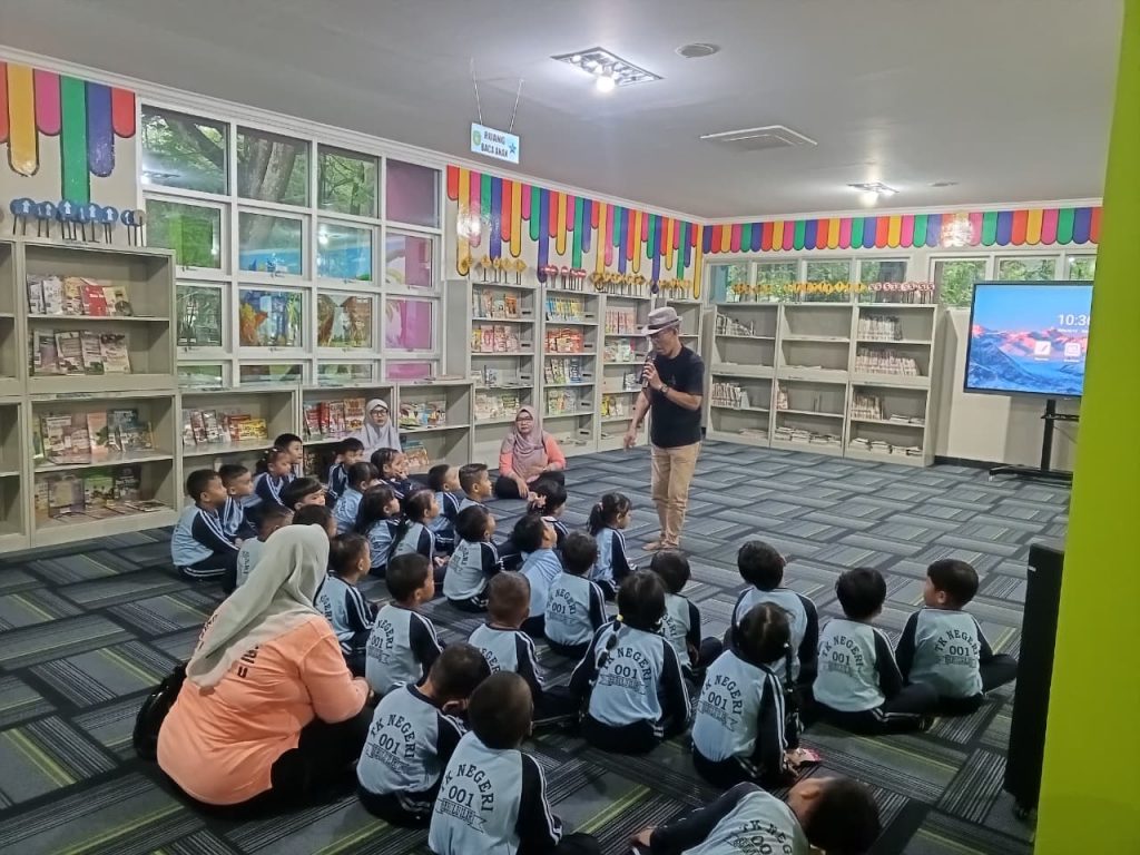 Selain itu, anak-anak juga diajak mengikuti kegiatan belajar sambil bermain yang dipandu oleh guru pendamping bersama petugas perpustakaan. Kegiatan ini menjadi pengalaman baru bagi anak-anak untuk mengenal perpustakaan sebagai tempat belajar yang nyaman dan menyenangkan.