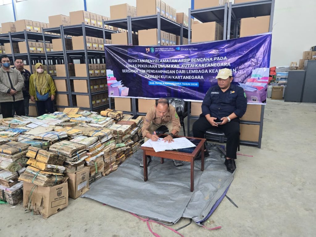Tenggarong, 27 Februari 2026 – Dinas Kearsipan dan Perpustakaan (Diarpus) Kutai Kartanegara (Kukar) melalui Bidang Perlindungan dan Penyelamatan Arsip (P2A) melaksanakan kegiatan penyelamatan arsip akibat bencana pada Dinas Pekerjaan Umum (DPU) Kukar selama dua hari.
