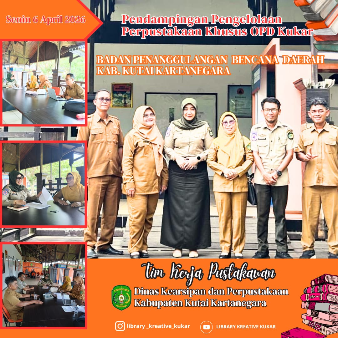 Tenggarong, 06 April 2026 — Dinas Kearsipan dan Perpustakaan Kabupaten Kutai Kartanegara kembali menunjukkan komitmennya dalam penguatan literasi dengan melaksanakan kegiatan Kunjungan Kerja Tim Pustakawan Kukar. Kegiatan ini difokuskan pada pembinaan pendirian serta pendampingan perpustakaan khusus di Badan Penanggulangan Bencana Daerah Kabupaten Kutai Kartanegara.